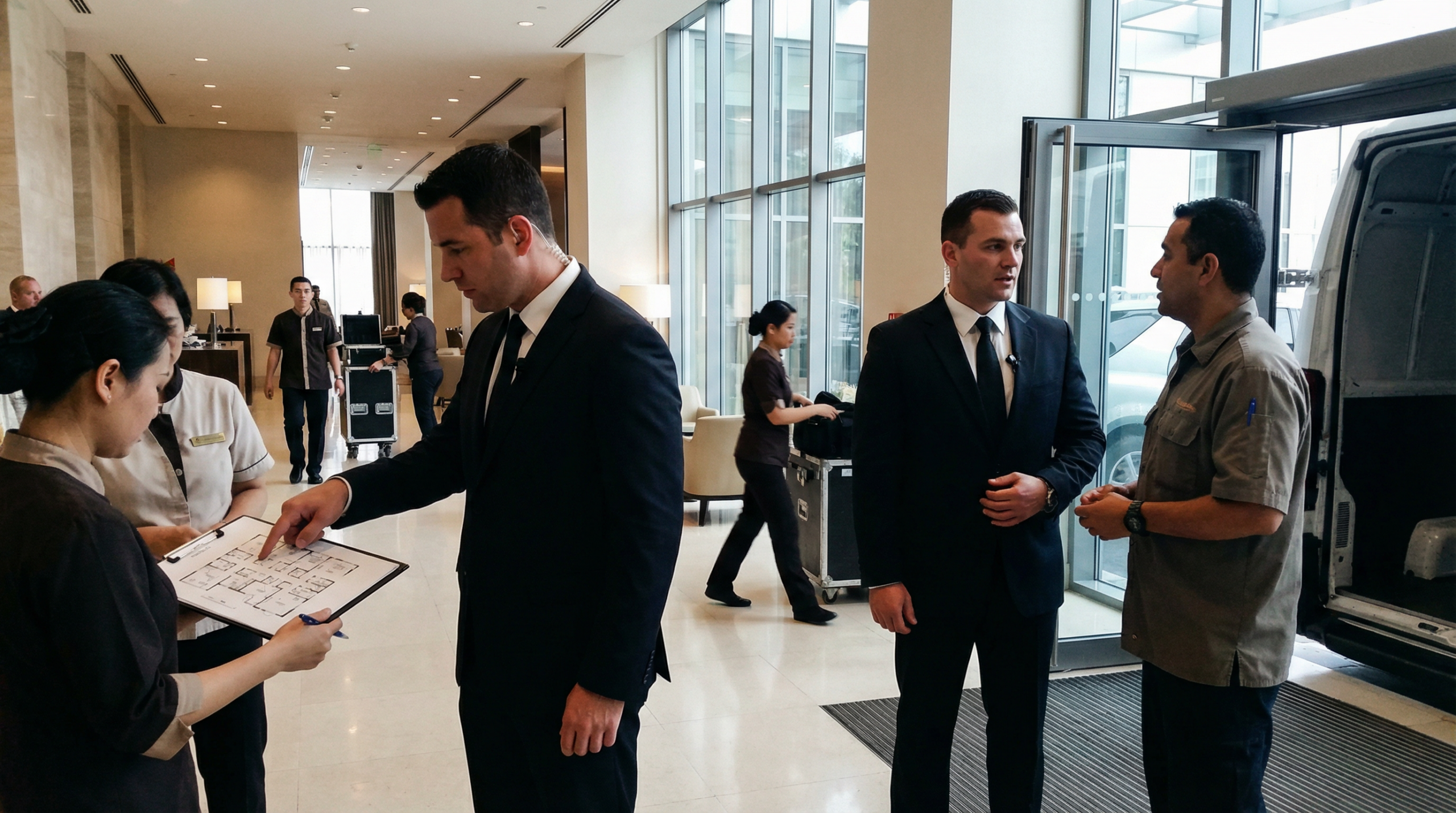 For meetings, events, and public spaces, we coordinate with your team and venue staff on entry points, seating, back-of-house paths, and escalation steps. This reduces confusion and helps keep attention off the principal.