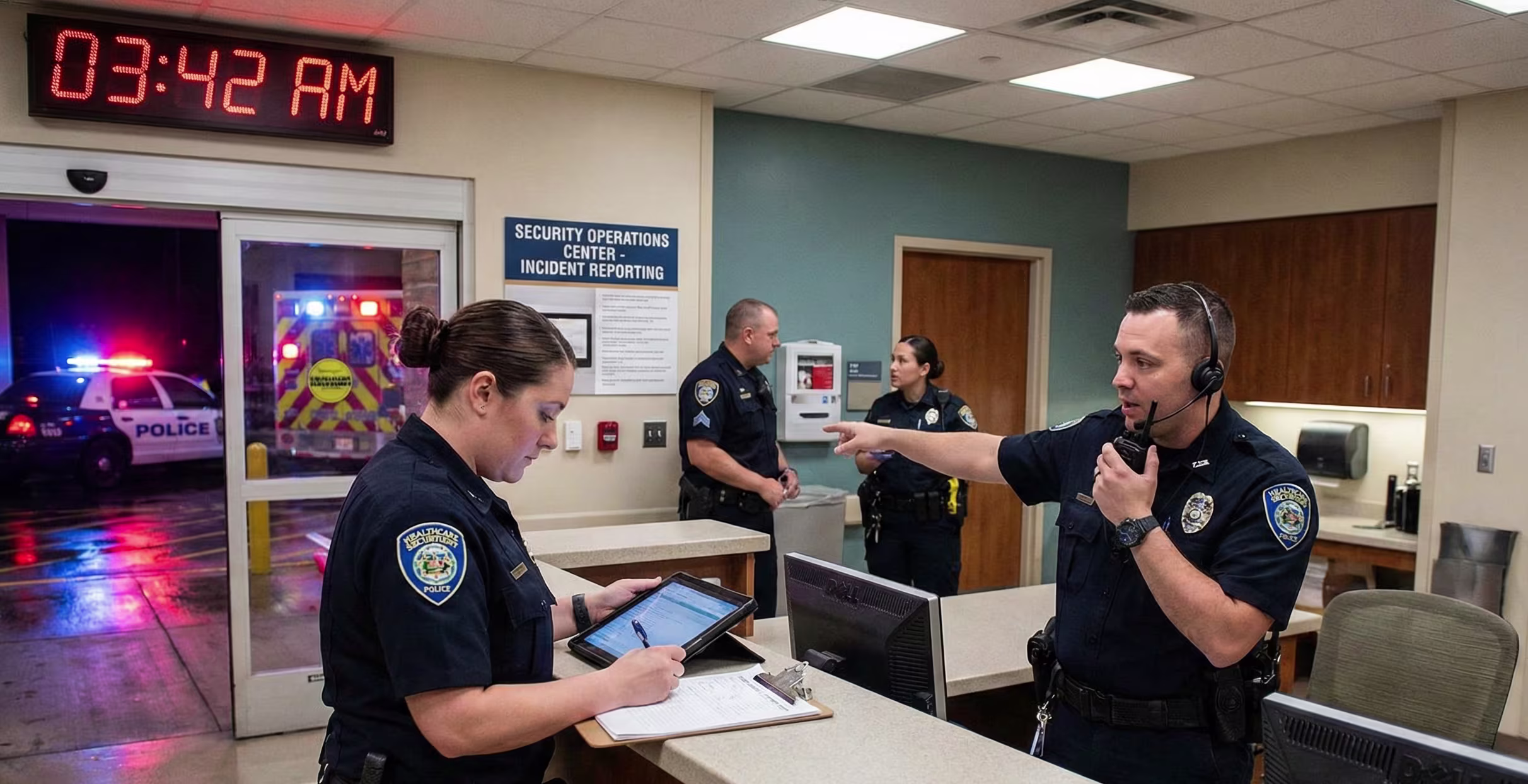 Healthcare locations deal with high foot traffic, emotional situations, and fast-changing priorities. A calm, professional presence can help lower tension, support staff, and keep patient areas focused on care.