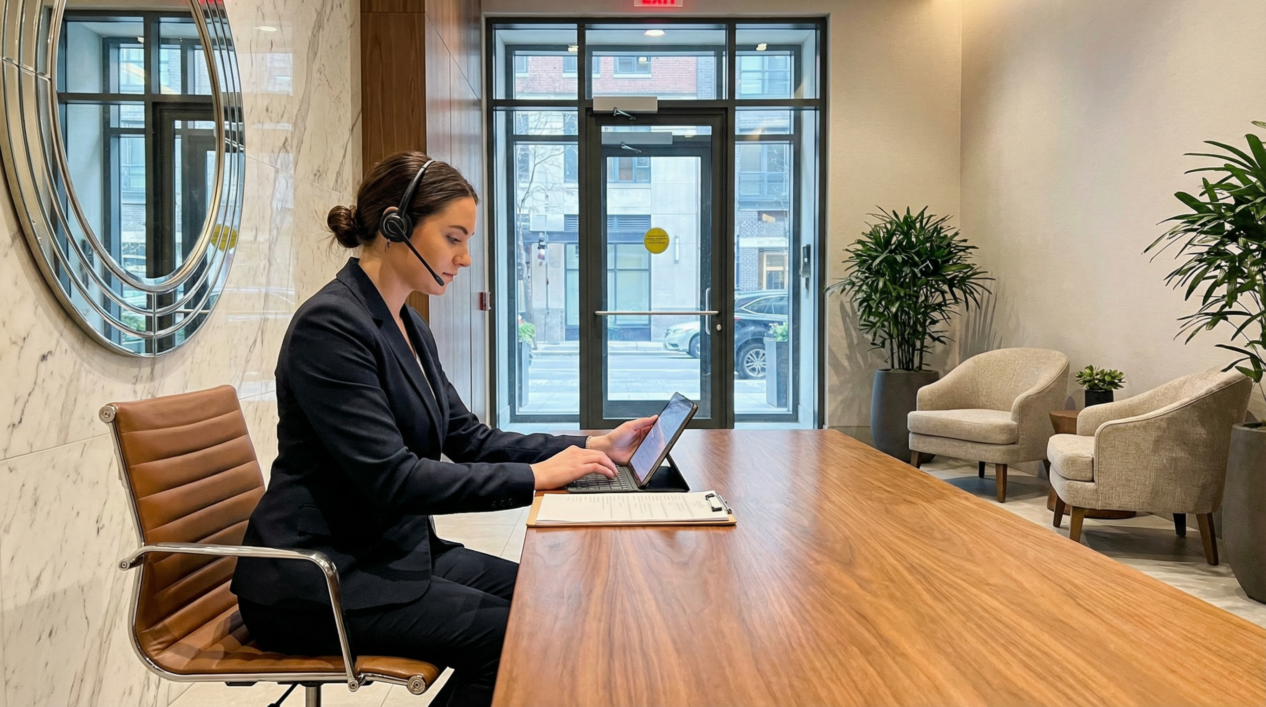 A professional front-desk presence that supports security, service, and a strong first impression.